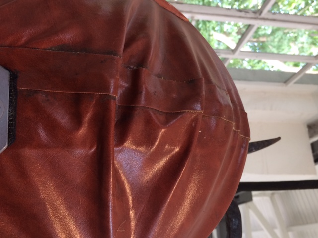 hier läuft ein Versuch mit 1,5 mm dickem Rindsleder, außen glatt, innen rau, beidseitig mit Juchtenfett eingerieben.