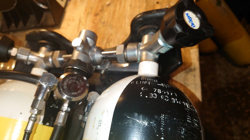 ich bastel mal wieder aus allen möglichen Krams aus dem Lager ein D7 zusammen. Grundgerät ist ein LTG 2800 von Dräger, Pneumatik ist Poseidon. Soweit ist auch alles schon schick, bloß aus der Reserveschaltung oder was das sein soll, werde ich nicht ganz schlau: Da ist ein Hebel an der Brücke und wenn man die Flaschen aufdreht, klackt es einmal kurz an der Stelle, wo der Hebel einen Stift in der Brücke reindrückt, wenn man ihn betätigt. Wenn ich den Hebel nicht betätigt habe und das System drucklos mache und wieder unter Druck setze, klackt auch nichts. Also wird mit dem Hebel irgendwas in der Brücke beeinflusst. Was genau, habe ich aber noch nicht rausbekommen.