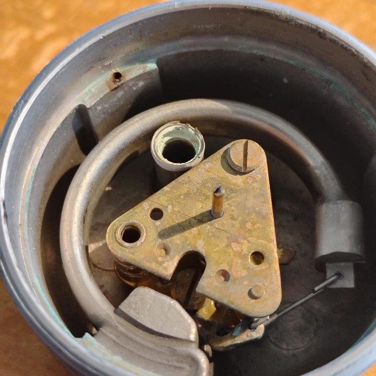 Aus Italien habe ich zwei Dräger Finimeter zum Restaurieren bekommen, beide voll mit Salzwasser. Nach dem Ultraschallbad sehen sie wieder ganz passabel aus. Die Scheibendichtungen sind noch IA. Ich vermute, daß das Wasser über das Überdruckventil eingedrungen ist. Das ist wie ein altes Fahrradventil aufgebaut. Ein kleiner Gummischlauch sitzt stramm auf einem Messingteil welches über eine Bohrung mit dem Gehäuseinnern verbunden ist.