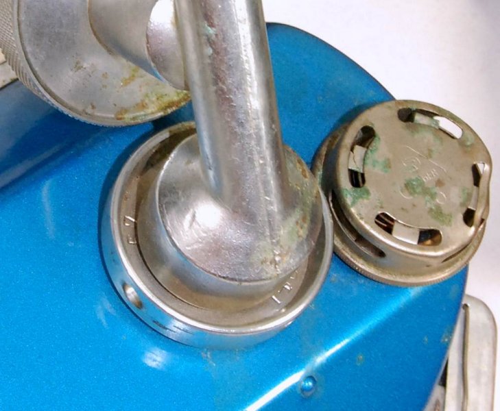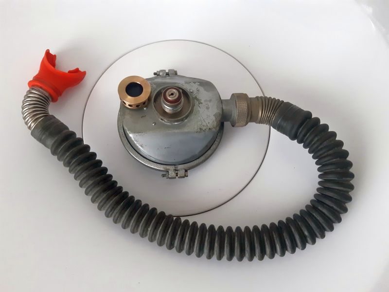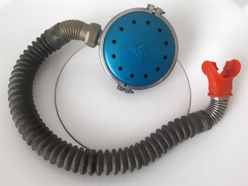 ich glaube die wurden auch als "Gaschutzgeräte" verwendet, evtl. war das der Anschluß für die Maske. Hat"Blau" evtl kein Ausatemventil?