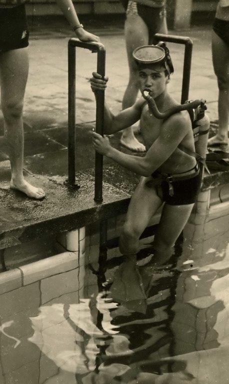 Heinz-Dieter Seiffert bei der Ausbildung im Berliner Olympiaschwimmbad.