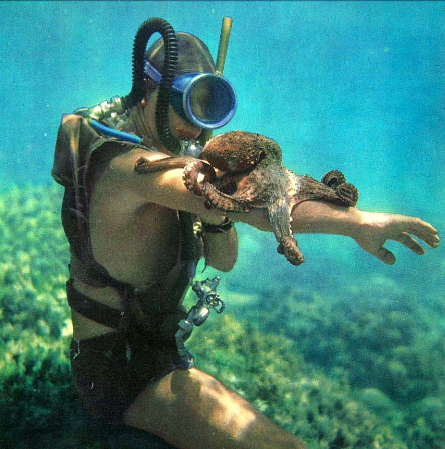ich hab beim Durchsehen eines älteren Buches aus 1958 folgende "Entdeckung" gemacht. Die Abbildung zeigt auf einer Fotografie von Klaus Wissel einen Taucher mit einem Dräger 138. Wahrscheinlich im Mittelmeer aufgenommen. Der Regler sah mir auf den ersten Blick nicht "serienmäßig" aus. In der Vergrößerung sieht man für meine Begriffe eindeutig den Regler aus dem Heeresatmer. Ergänzt durch ein vertikal gestelltes Finimeter....