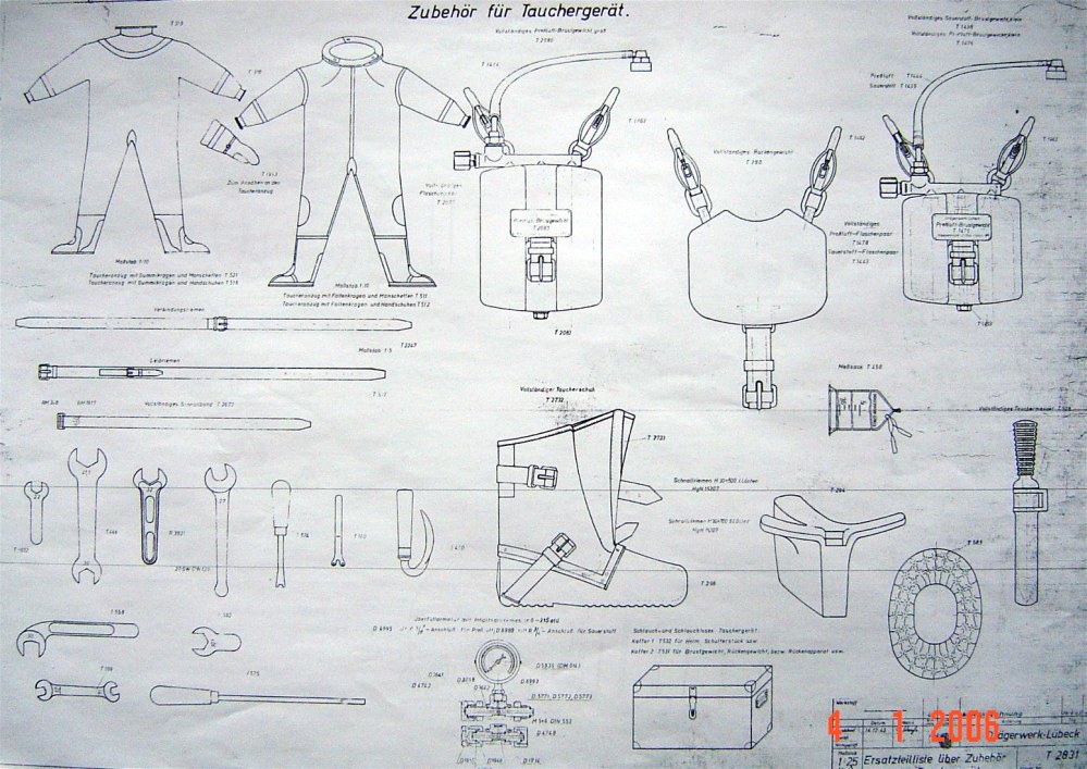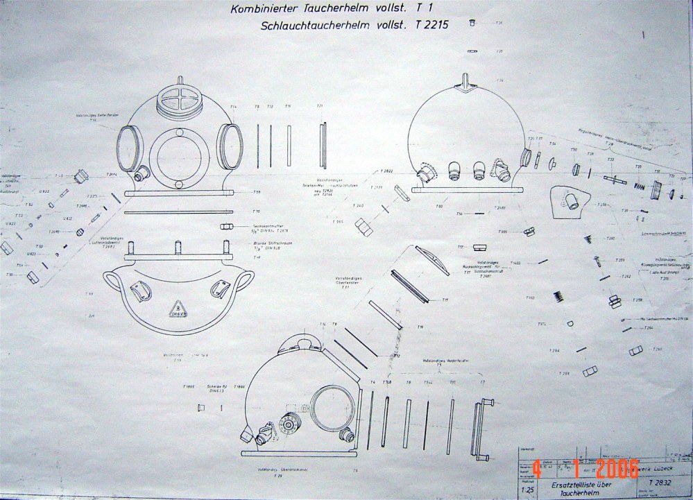 Habe das Glück eine Dräger Helmtaucherausrüstung bekommen zu haben. Sie stammt ursprünglich von dem Taucherbetrieb Friedrich Wortmann aus Herford. Die hatten wohl 2 Helmtauchausrüstungen mit Dräger-Schlauchtauchgeräten (Einheitsausführung) aus den frühen 40er Jahren mit den Nummern 2842 und 2690. Beide Kisten mit den eingeschlagenen Nummern existieren noch. Allerdings wurden die Helme getauscht, so dass ich das Oberteil von 2842 und das Unterteil von 2690 habe. Solltest Du etwas zu dem Verbleib des anderen Helms oder zur Taucherfirma wissen, freue ich mich sehr über eine Info.