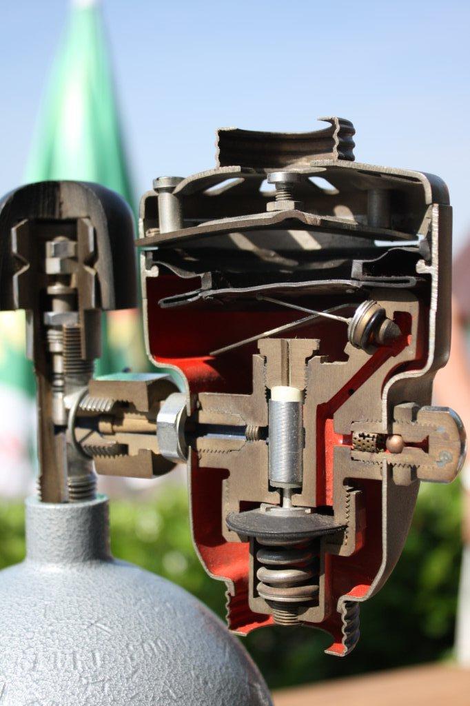 Da dies aber ein Einschlauchregler war, wurde der Mitteldruck als Hilfsdruck für die Kompensation genommen und nicht der Druck aus der Membrankammer wie beim Ei.