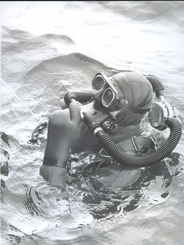 wer kann mir etwas zu diesem Atemanschluss sagen. Die Aufnahmen zeigen Erprobungssituationen und stammen aus dem Archiv der Berliner Feuerwehr. Nähere Angaben über Hersteller, Jahr etc. gibt es leider nicht. Auffällig sind lediglich die Anschlüsse für ein Tauchertelefon.