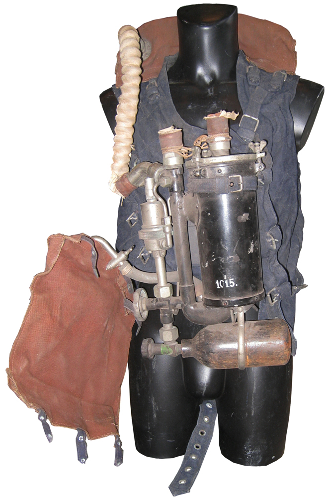 Wir wissen, dass die Marine 1912 ihre ersten Taucherretter von Dräger gekauft hat. Das muss das Modell 1910 oder 1911 gewesen sein.